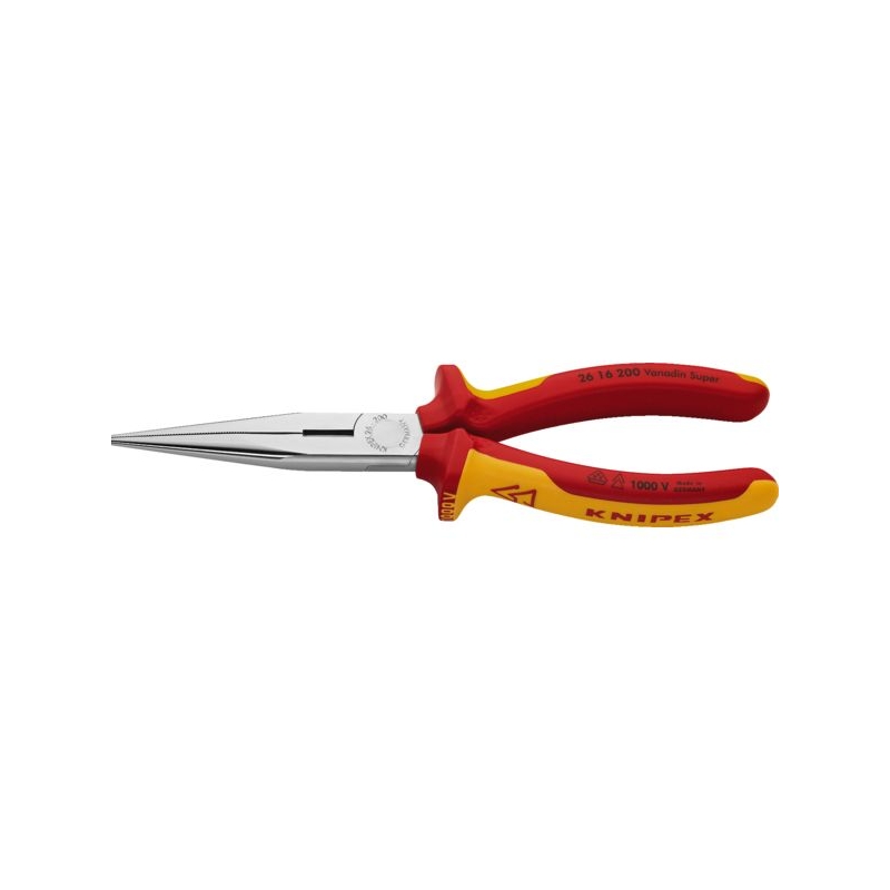 Pour les travaux nécessitant une prise et une coupe de précision. Mâchoires demi-rondes, longues et effilées. Poignées bi-matière isolées 1000 V. Acier forgé. Tranchants pour fil doux, mi-dur Ø 3,2 mm et dur Ø 2,2 mm. Longueur : 160 mm