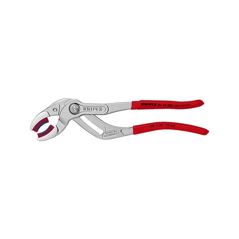 Pour siphons, tubes en plastique et connecteurs jusqu’à 80 mm de diamètre. Mâchoires avec inserts en plastique pour ne pas marquer les pièces. Poignées gainées en PVC. Longueur : 250 mm